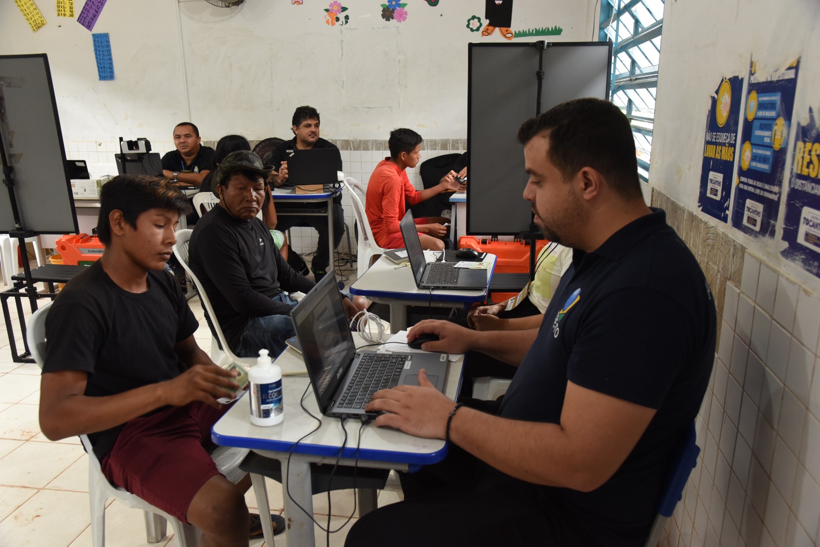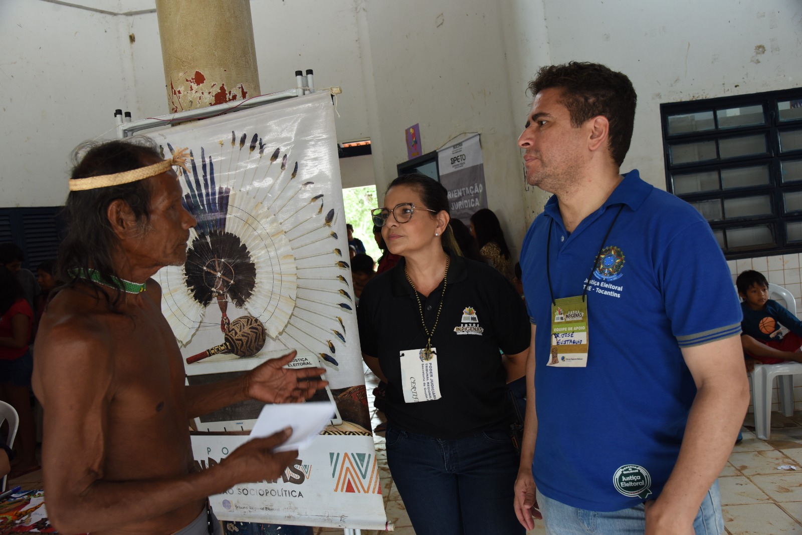 Serviços eleitorais, emissão de carteira de identidade, CPF, atendimento médico e orientações jurídicas, são alguns dos atendimentos oferecidos durante as atividades do Programa Permanente de Inclusão Sociopolítica dos Povos Indígenas, do Tribunal Regional Eleitoral do Tocantins (TRE-TO), na Aldeia Pedra Branca, em Goiatins, nesta quinta-feira, 23.